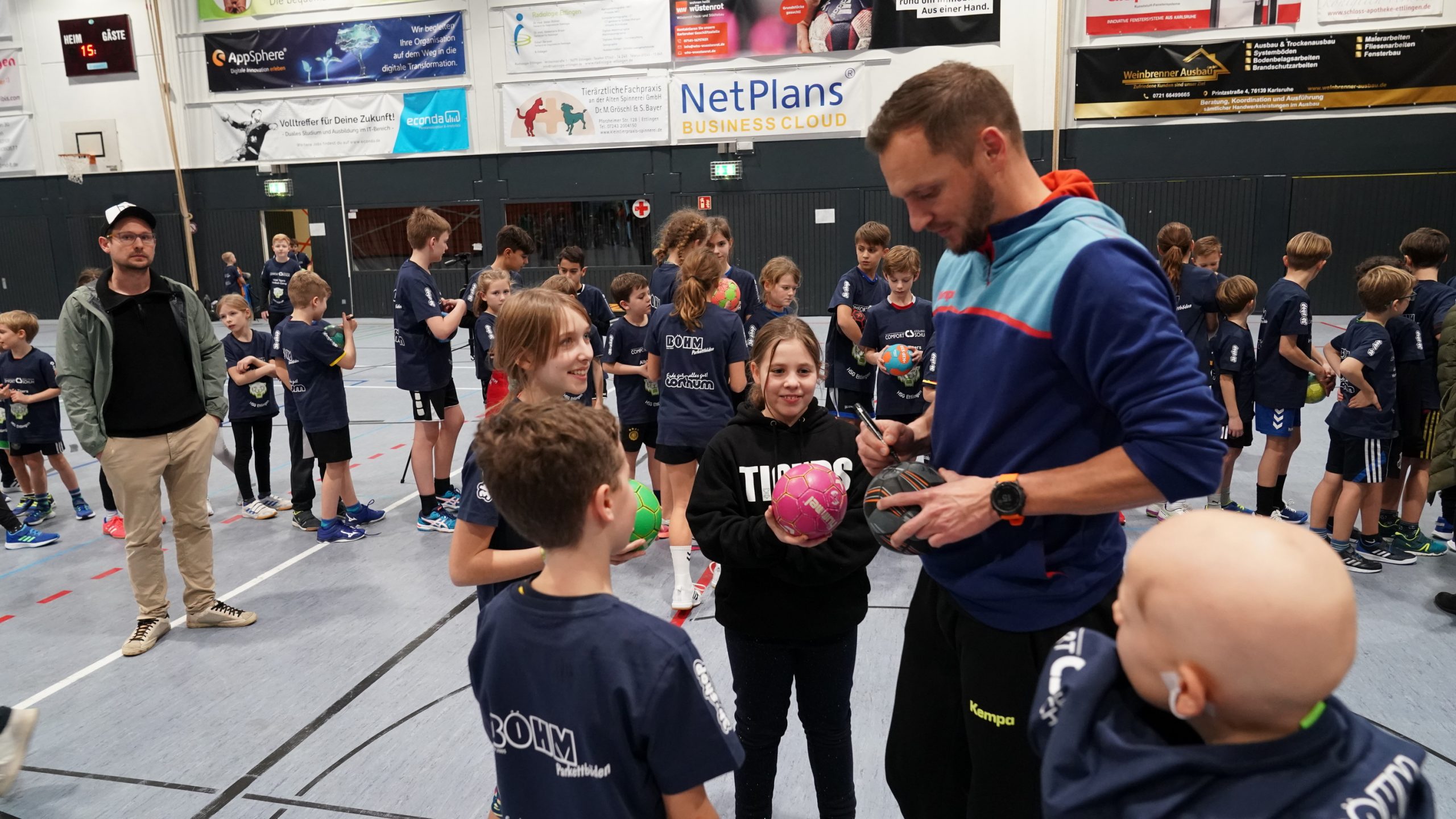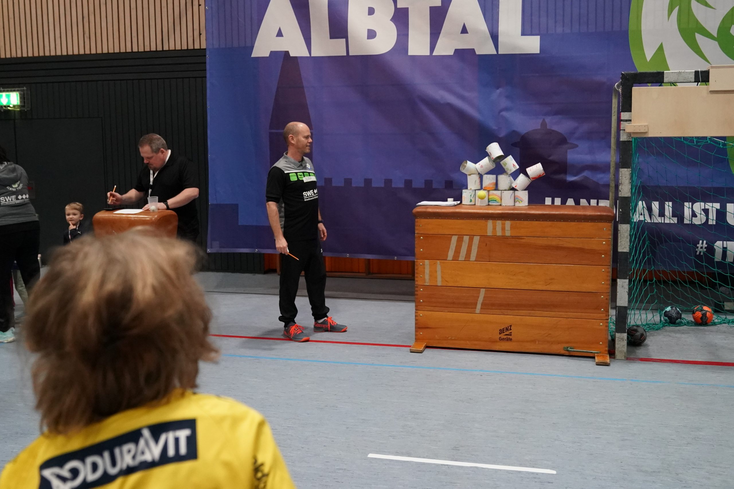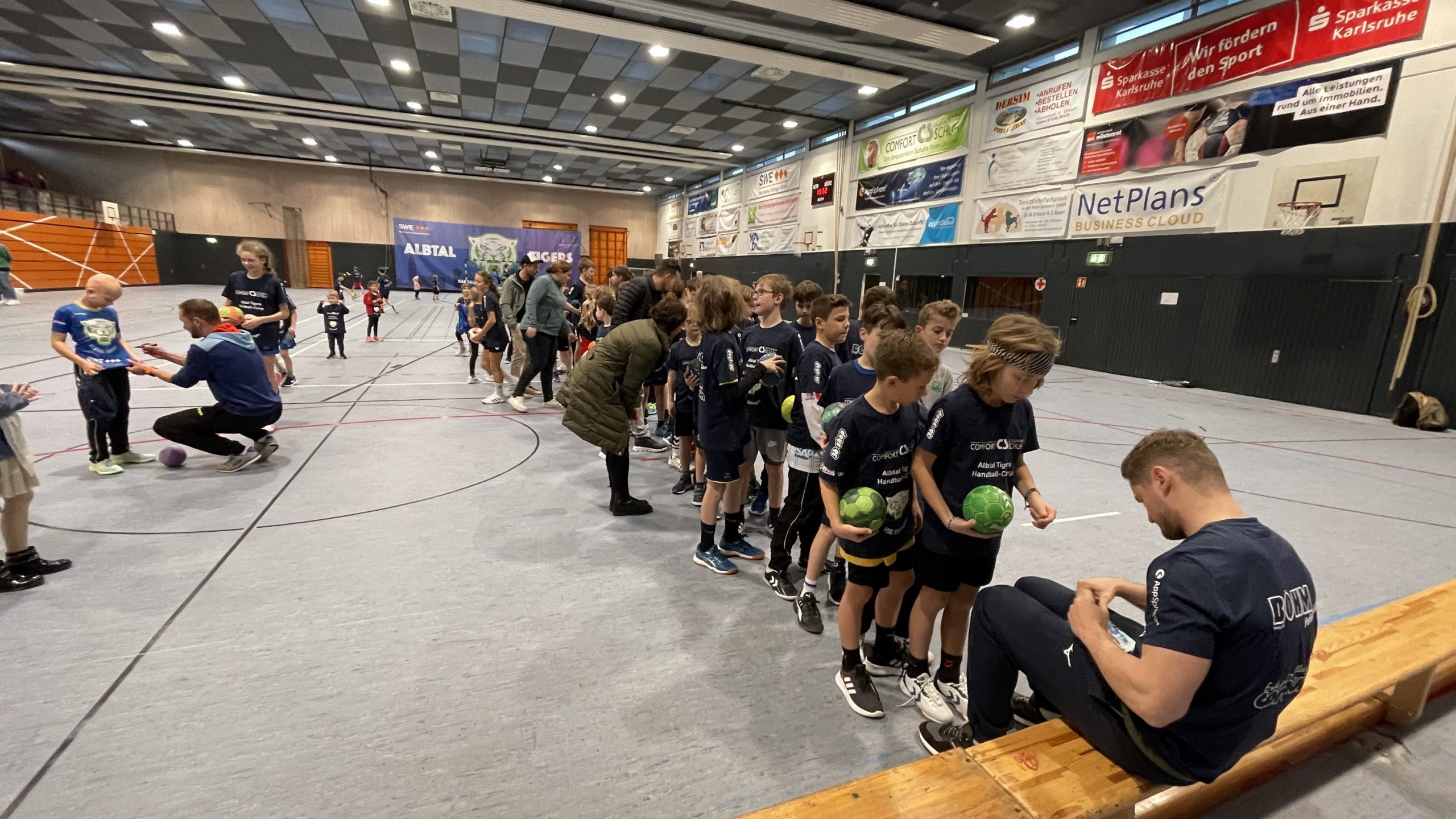 78 begeisterte Kids im Alter von 6 bis 13 Jahren, zwei Tage Spiel und Spaß, 12 motivierte Trainer rund um den sportlichen Campleiter Hagen Harich, ein engagiertes Helferteam der Eltern und eine Frage- und Autogrammstunde sowie eine 7m-Challenge mit Nationalspieler und Bundesliga-Profil David Schmidt von FrischAuf Göppingen sowie Drittliga-Torhüter und Ex-Profil Bastian Rutschmann von der SG Pforzheim/Eutingen. So läßt sich das 7. Albtal Tigers Jugend-Handballcamp in der Franz-Kühn-Halle in Bruchhausen beschreiben.