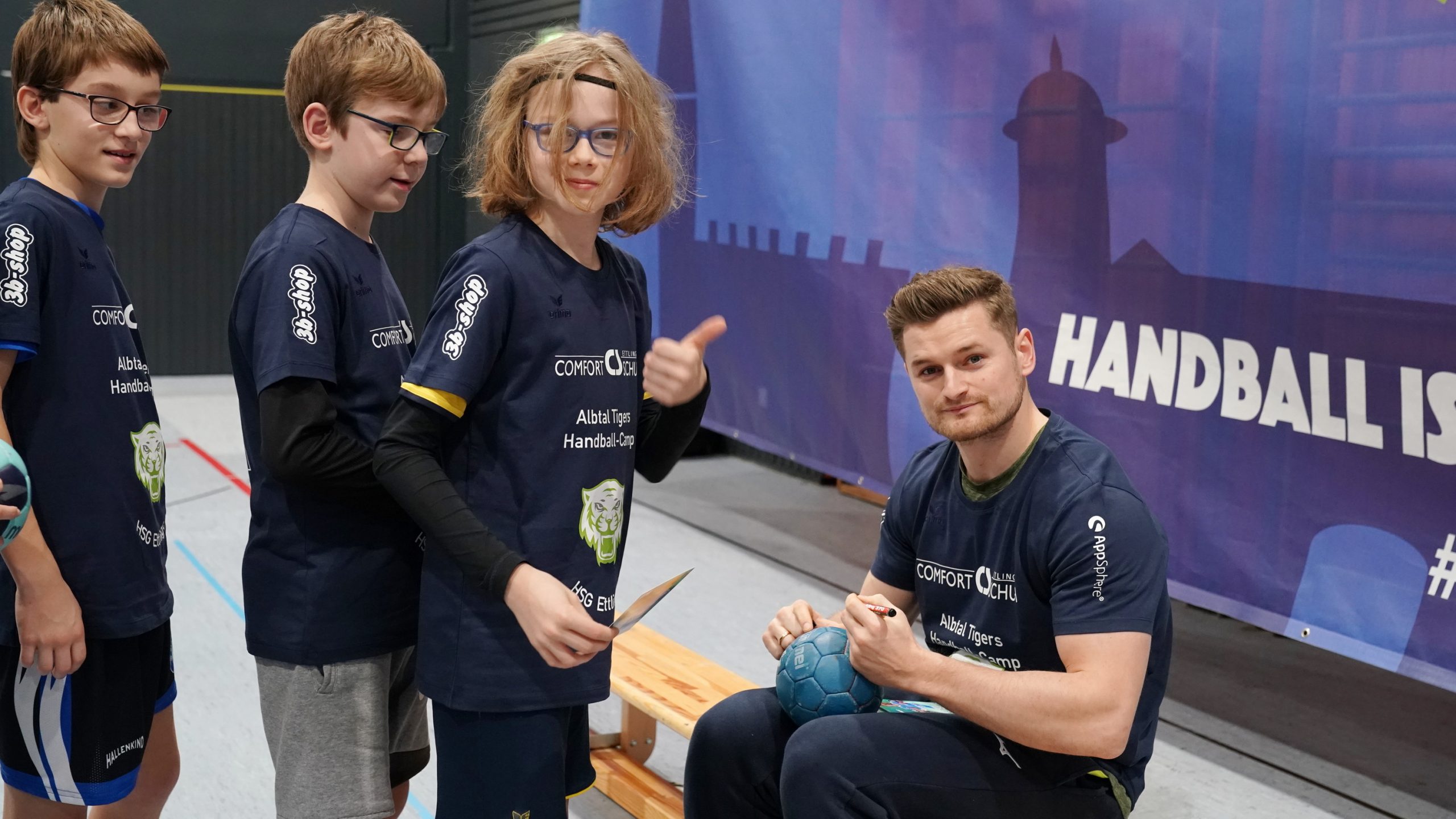 Das 7. Albtal Tigers Jugend-Handballcamp zeigte eindrucksvoll, dass HANDBALL IN ETTLINGEN immer populärer und von der Jugend im Umfeld angenommen wird. Unser großer Dank gilt allen teilnehmenden Kids und deren Eltern. Zudem David Schmidt und Bastian Rutschmann für ihr Kommen und die Autogrammstunde, Hagen Harich und dem gesamten Trainer- und Betreuerstab sowie Joachim Rutschmann und den “Verpflegungseltern” vor Ort, welche an beiden Tagen für das kulinarische Wohlbefinden sorgten.