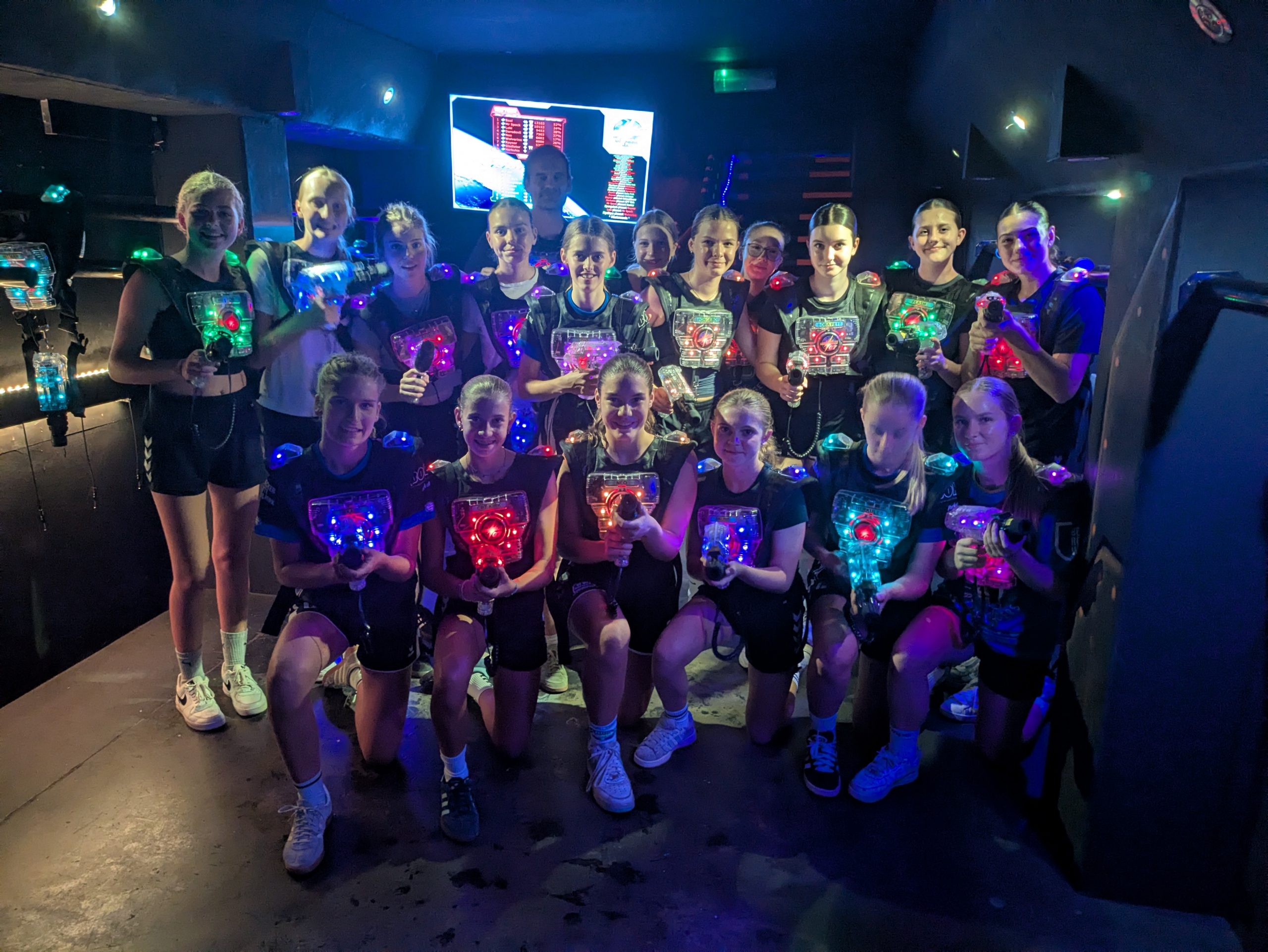 Los ging es mit der ersten Trainingseinheit in gewohnter Umgebung in der Franz-Kühn-Halle. Nach einem anschließenden gemeinsamen Mittagessen im Teamraum (Dank geht an Koch und Köchin) ging es dann Richtung Heidelberg. Nach dem Einchecken in der Jugendherberge stand direkt die nächste sportlichen Herausforderung an, wenn auch ohne Ball: Es standen drei Runden Lasertag auf dem Programm. Ein großer Spaß, wenn auch der ein oder andere (Trainer) die körperliche Herausforderung wohl unterschätzt hatte.