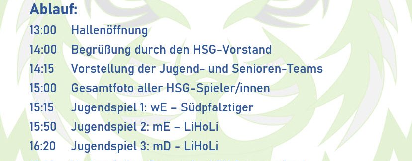 Unser Teamtag beginnt am Sonntag, den 13.9., um 14 Uhr mit einer kurzen Begrüßung durch den HSG-Vorstand und einem Ausblick auf die Ziele der HSG. Direkt im Anschluss stellen sich alle Jugend- und Seniorenteams mit ihren Trainern vor und geben einen Ausblick auf die Saisonziele.
