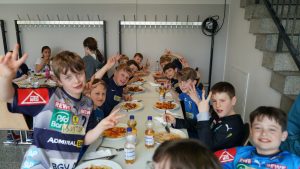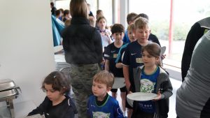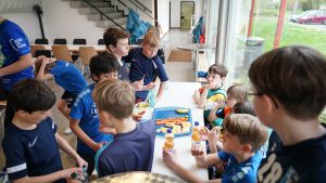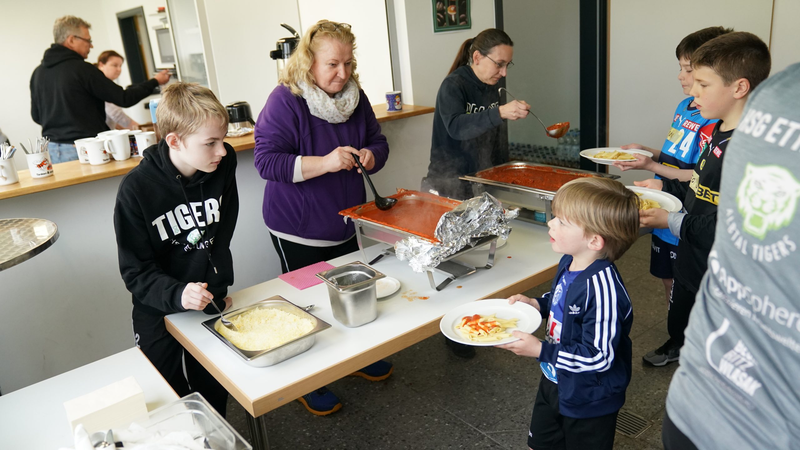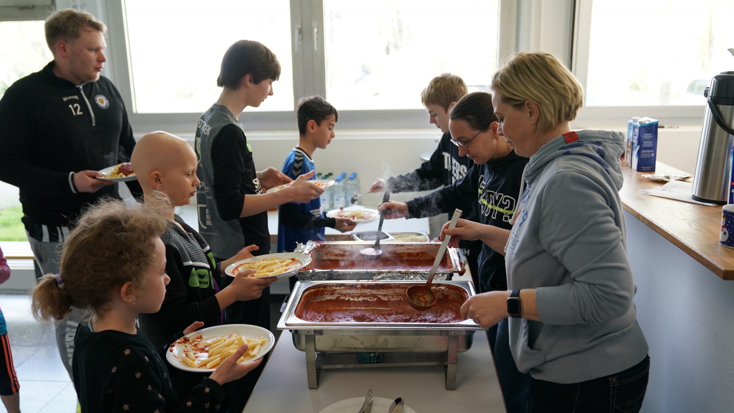 Mit 82 Kids, welche über die Osterfeiertage Unmengen an Energie angesammelt hatten, war Campleiter und Jugendtrainer Hagen Harich und sein 12-köpfiges Trainer- und Betreuerteam gefordert. Doch mit viel Routine und der nötigen Portion Gelassenheit wurde die “Power-Bande” mit vielseitigen Übungen und Spielen systematisch müde gemacht und der überschüssigen Energie beraubt. In den Pausen sorgte ein Elternteam rund um Joachim Rutschmann für die nötige Flüssigkeits- und Vitaminzufuhr. Das leckere Mittagessen wurde am zweiten Camptag wieder vom Ettlinger Mittagstisch-Restaurant und Caterer „Kochtöpfle“ gespendet. Herzlichen Dank, liebe Michaela Jacobs mit Team