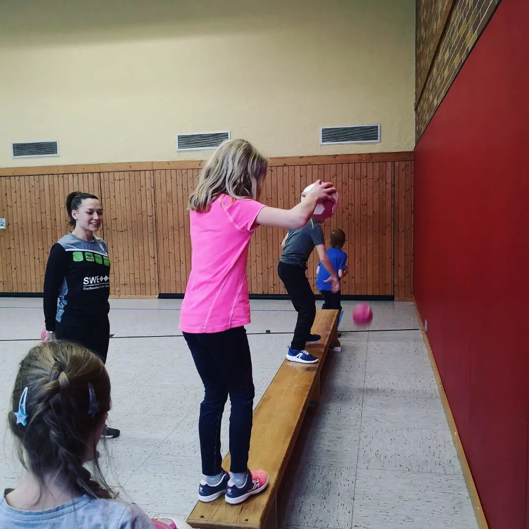 Nach der Ballgewöhnung wurde geworfen und gepasst und am Ende durften die Kinder ein Abschlussspiel spielen!