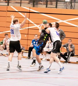 In der Anfangsphase agierten beide Mannschaften reichlich nervös und fanden vor allem in der Abwehr nur schwer in die Partie. Die Mannen aus dem Walzbachtal wurden von Spielmacher Marco Reichert dann nach und nach vor allem in den Angriffen sicherer geführt und lagen daher bis zu 20. Minute immer wieder in Front. Bei den Tigers funktionierte im ersten Drittel vor allem die Deckung, der Torhüter Luis Lagasse den notwendigen Rückhalt gab. Die Ettlinger Offensive hatte lange Zeit Probleme ihr Spiel gegen die 5:1 Deckung der Gäste in Gang zu bringen. Andrei Burlakin sah sich in der 19. Minute gezwungen eine Auszeit zu nehmen. Kurz danach erzielte Vincent von Witzleben mit dem Treffer zum 8:7 die zweite Führung für sein Team. Die Feldmann Truppe erwischte es in dieser Phase dann hart, denn sie mussten in doppelter Unterzahl agieren und wurden kalt erwischt. Spielmacher Tobias Broschwitz und erneut von Witzleben nutzten die zahlenmäßige Überlegenheit und bauten die Führung auf 10:7 aus. Nur wenig später sorgte ein ungeschicktes Eingreifen von Jonas Weiß für eine Zeitstrafe auf der Tigers Seite, so dass die Gäste aus dem Kraichgau den Anschluss zum 11:10 erzielen konnten. In der Schlussphase der ersten Hälfte retteten die Mannen von Trainer Burlakin einen zwei Tore Vorsprung mit 13:11 in die Pause.