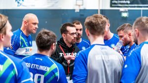 Nach dem ersten Viertel waren die Meyer Schützlinge schon auf 12:4 enteilt und das neue Trainerteam des TVK, Dennis Estedt und Marco Hägele nahm eine Auszeit. Der Motor der Hausherren lief aber weiter auf Hochtouren und die „Tigers“ spielten sich regelrecht in einen Rausch. Mitte der ersten Halbzeit brachte Trainer Meyer dann Neuzugang Blum mit in die Partie, der aber zunächst durch zwei Zeitstrafen auffiel und wieder auf der Bank Platz nahm. Bemerkenswert war vor der Pause, dass Ettlingen seinen Gegner durch ständigen Tempohandball unter Druck halten konnte. Der TVK fand keine Mittel den Kontrahenten zu bremsen und musste mit einem 21:8 in die Pause gehen.