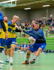 Spielertrainer Henning Paul erwartete in Mühlacker eine enge Auseinandersetzung und gab mit seinen Jungs vom Anpfiff weg richtig Gas. Mit drei Toren zur 1:3 Führung drückte er der Partie gleich den Stempel auf. Seine Mannschaft agierte aus einer stabilen Deckung und schaltete bei Ballgewinn schnell in den Angriffmodus um. Schon nach wenigen Minuten hatten die Gäste die Begegnung sicher im Griff und ließen dem HC Mühlacker wenig Möglichkeiten ins Spiel zu finden. Nach einem Drittel der Begegnung führten die Gäste mit 6:12. Ab diesem Zeitpunkt wurde Henning Paul in Sonderbewachung genommen. Sein Team benötigt eine gewisse Zeit, um sich darauf einzustellen. Ettlingen führte dennoch zur Halbzeit mit 7:12.