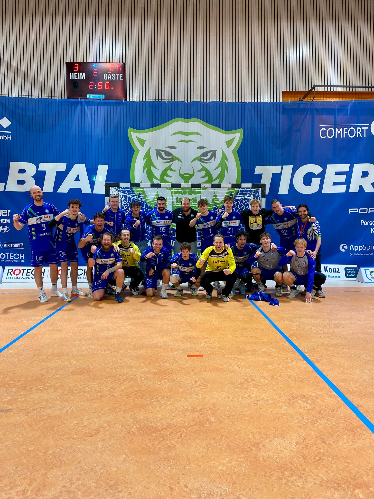 Auch im zweiten Durchgang bot sich ein ähnliches Bild. Eine stabile 6:0-Abwehr und konsequentes Tempospiel nach vorne ermöglichten den Tigers immer wieder einfache Tore. In der 40. Minute sorgte Konstantin Schwarz mit seinem Treffer zum 21:15 für eine erste Vorentscheidung.