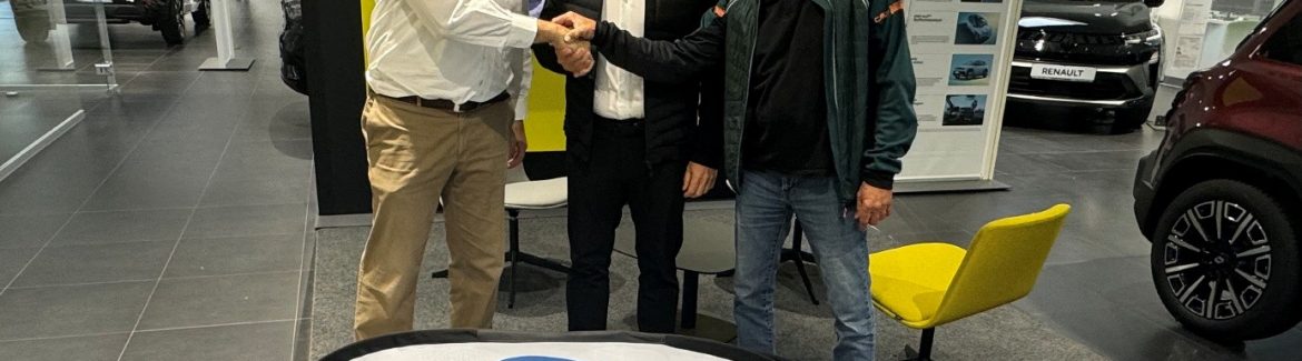 Besiegelt wurde die Zusammenarbeit von Michael Becker (links, 1. Vorsitzender Sponsorenpool), Oliver Belz (Mitte, Verkaufsleiter Auto-Krasser) und Claus Witz (rechts, HSG Ettlingen).