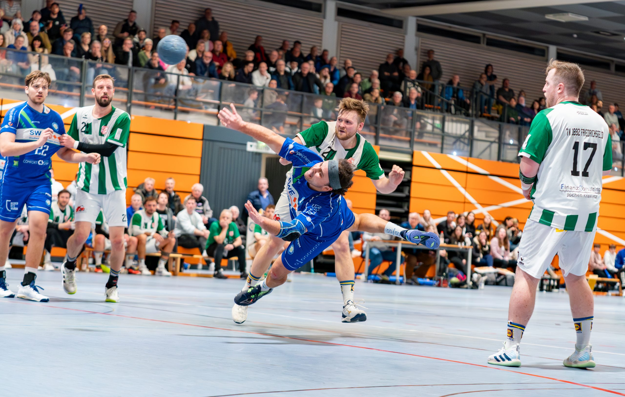 Schon recht früh setzten sich die Hausherren aus einer konzentriert arbeitenden Deckung ab. Die Meyer Schützlinge schalteten schnell um und trugen ihre Angriffe in hohem Tempo vor . Immer wieder wurde der Gegner zu Fehlern verleitet. Die Ballgewinne führten dann fast immer zu schnellen erfolgreichen Gegenstößen, so dass Ende des ersten Viertel der Vorsprung schon sechs Tore betrug und TVF-Trainer schon früh seine Auszeit nahm. Die Albgauer waren jedoch nicht zu bremsen. Nach dem Ende des zweiten Drittels lagen die Hausherren schon 13:4 vorne. Unter der Regie von Nick Kusch hielten die „Tigers“ das Tempo unvermindert hoch. Bis zum Pausensignal zogen Gastgeber fast schon vorentscheidend auf 20:7 davon.