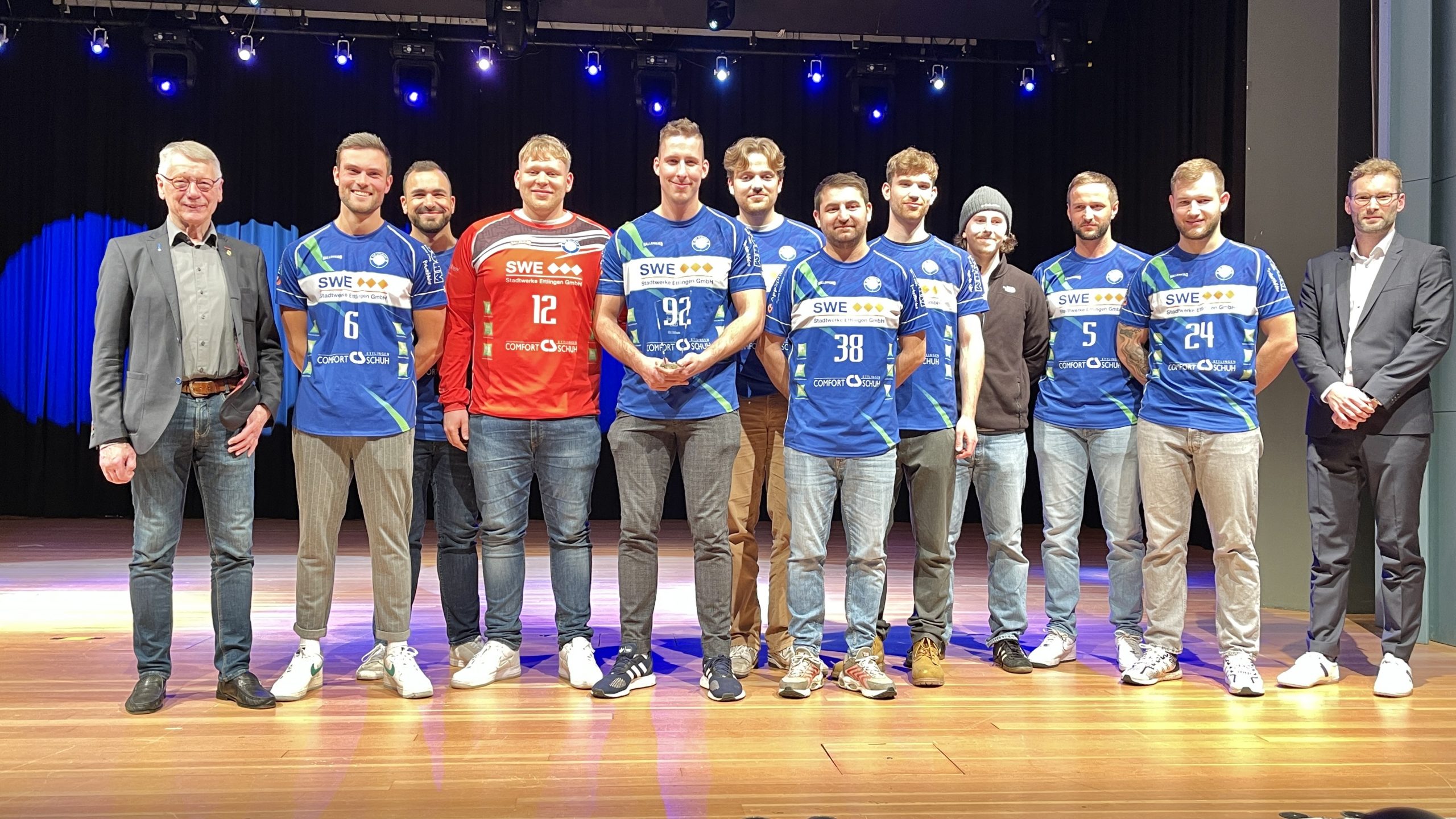 Beim Wettbewerb „Mannschaft des Jahres 2023“, welcher jedes Jahr vom Kultur- und Sportamt der Stadt Ettlingen ausgelobt wird, konnte sich unsere 1. Herrenmannschaft durchsetzen und den 1. Platz belegen. Der souveräne Aufstieg aus der Verbandsliga in die Badenliga beeindruckte die Wähler und sorgte für einen deutlichen Vorsprung gegenüber den ebenfalls nominierten Teams der Bogenschützen und Kegler. Die HSG konnte von ca. 1000 abgegeben Stimmen ca. 48% auf sich vereinen und lag damit deutlich vorne.