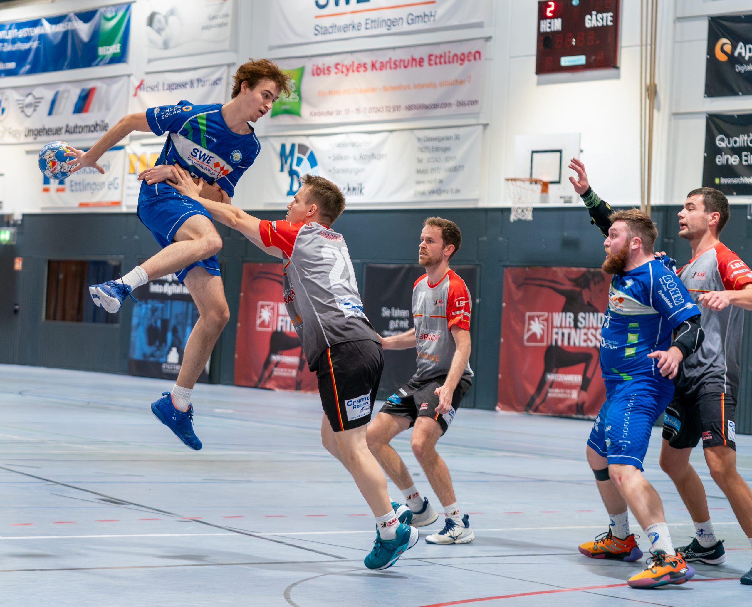 Trotz der schwierigen Ausgangslage starteten die Tigers konzentriert ins Spiel. Besonders in den ersten Minuten fand man immer wieder Lücken in der Abwehr der Gäste, sodass Ettlingen früh die Führung übernehmen konnte. Bis zur 15. Minute verlief alles nach Plan, und ein Treffer von Martin Gladitsch sorgte für eine 8:5-Führung. Doch danach schlichen sich Unsauberkeiten ins Spiel der HSG ein: Die Defensive verlor an Stabilität, wodurch der SSC Karlsruhe zu oft zu einfachen Abschlüssen aus sechs Metern kam. Gleichzeitig fehlte im Angriff die letzte Konsequenz. Vielversprechende Chancen blieben ungenutzt, und die Gäste gewannen zunehmend die Oberhand. Bis zur Halbzeit drehte der SSC das Spiel und ging mit einem 4-Tore-Vorsprung in Führung. Erst Till Steinmetz konnte mit der Halbzeitsirene noch einmal auf 3 Tore verkürzen.