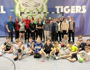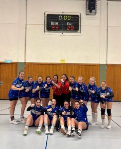 Wow - 25:33 Endstand gegen die bis dato ebenso verlustpunktfreien Rintheimerinnen! Wie kam das zustande? Der ursprünglich Matchplan war: Aus einer 5:1 Deckung über die vorne deckende Spielerin in den Tempogegenstoss zu kommen. Dies ging erst einmal richtig schief. Die Rintheimerinnen kamen hier immer wieder, mit der Auftakthandlung “einlaufenden Aussenspielerinnen“, in Eins-gegen-Eins-Situationen, welche durch ihre