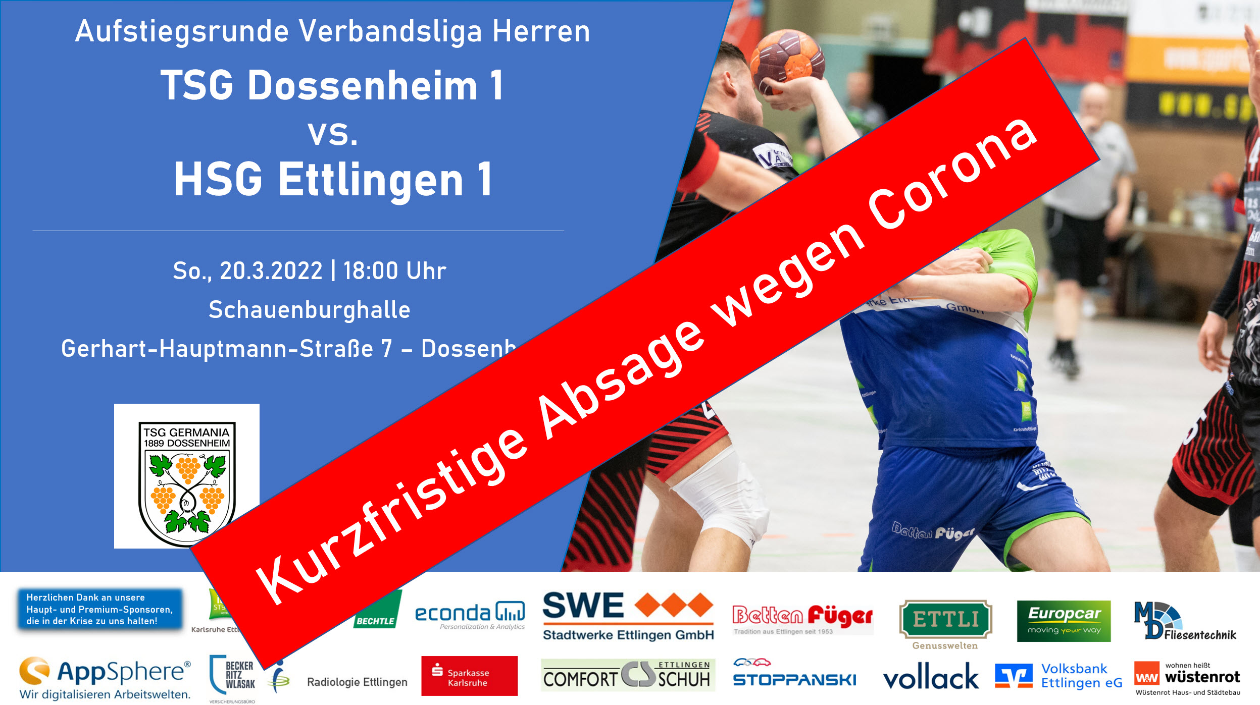 Leider müssen wir das 1. Aufstiegsspiel bei der TSG Dossenheim am heutigen Sonntag, 20.3., um 18:00 Uhr wegen Corona-Fällen im Team kurzfristig absagen.