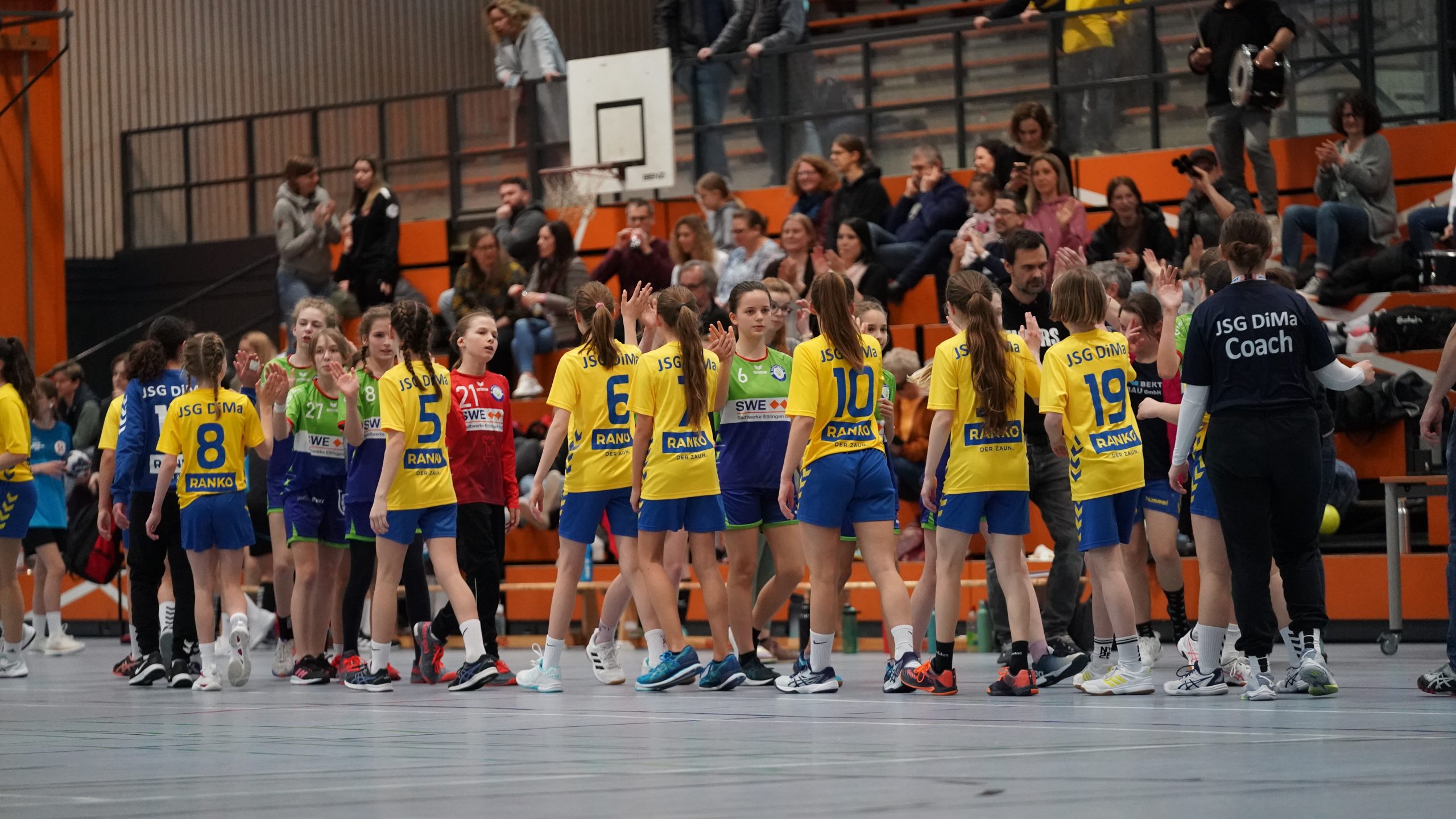 Sportlich gesehen hatten unsere Mädels leider das Pech, schon im Halbfinale auf die insgesamt übermächtige Mannschaft aus Malschenberg zu treffen. Die Mädchen der HSG lieferten ein tolles Spiel ab, konnten aber gegen die durchgängig hohe Klasse der Gegnerinnen nur bedingt mithalten. Mit 23:13 fiel die Niederlage sicherlich ein wenig zu hoch aus.