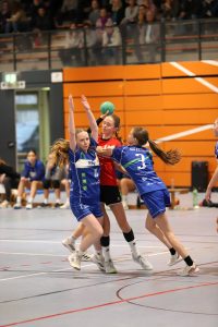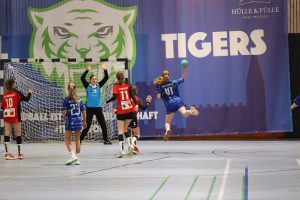 Noch zu erwähnen ist, dass es ein ungewöhnlich faires Spiel war. Das liegt vielleicht auch daran, dass sich die Spielerinnen der beiden Vereine mittlerweile gut kennen und auch im Stützpunkt des HBW zusammen trainieren. Das gute Verhältnis der Mannschaften zeigte sich auch zwischen den Anhängern der beiden Teams: Zusätzlich zur freundlichen Atmosphäre auf der Tribüne steuern die Gäste auch die Bilder für diesen Artikel bei. Viele Dank dafür!
